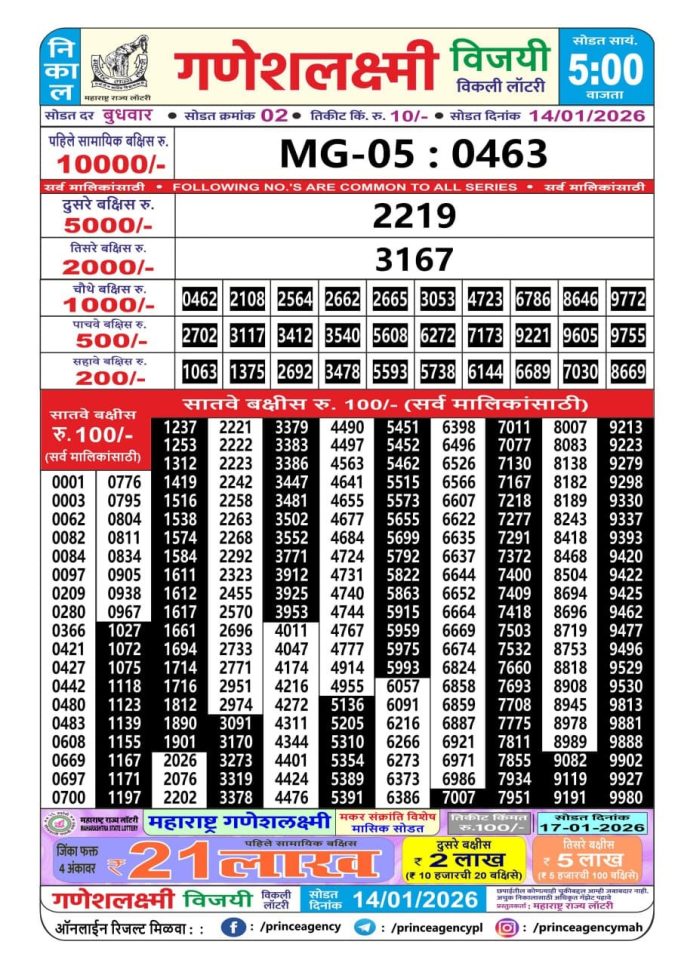 Maharashtra Gajlaxmi Lottery Result 14.01.2026