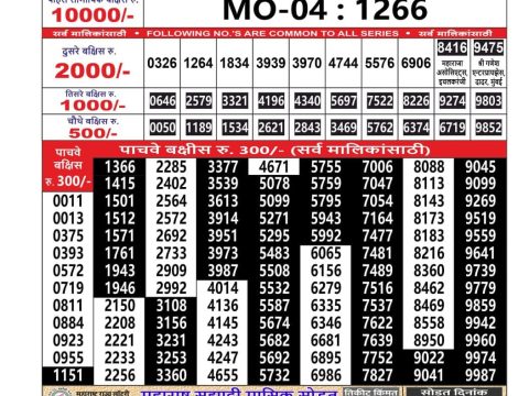 Dear 100 Beas Tuesday Day Weekly Lottery 5 Pm Result 13.05.2025 May 13, 2025 Leave a Comment on Dear 100 Beas Tuesday Day Weekly Lottery 5 Pm Result 13.05.2025 Share: XFacebookPinterestRedditVKDiggLinkedinMix Related Articles 0 139 Rajshree 10 Evening Weekly Lottery 5:40 Pm Result 23.05.2025 0 115 Maharashtra Gajlaxmi Weekly Lottery 4.45 PM Result 15.09.2025 0 35 Maharashtra Mohini Lottery Results 08.02.2026 0 93 Punjab State Dear 50 Ranger Sunday Weekly Lottery 6 pm Result 21.09.2025