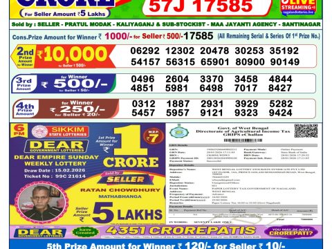 Dear 50 Sutluj Friday Weekly Lottery 5 PM Result 27.06.2025 June 27, 2025 Leave a Comment on Dear 50 Sutluj Friday Weekly Lottery 5 PM Result 27.06.2025 Share: XFacebookPinterestRedditVKDiggLinkedinMix Related Articles 0 40 Rajshree Thursday Weekly Lottery 8 PM Result 11.12.2025 0 21 Dear Rise Monday Weekly Lottery 1 PM Result 16.02.2026 0 39 Golden Star Som Weekly Lottery 9 PM Result 08.12.2025 0 171 Rajshree 250 Monthly Lottery Result 6.5.2025