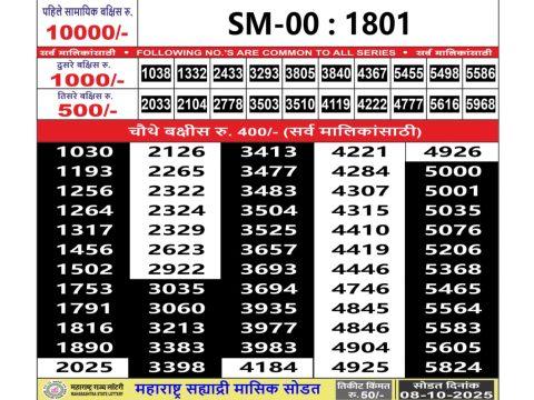 Dear Legend Monday Weekly Lottery 6 PM Result 13.10.2025 October 13, 2025 Leave a Comment on Dear Legend Monday Weekly Lottery 6 PM Result 13.10.2025 Share: XFacebookPinterestRedditVKDiggLinkedinMix Related Articles 0 92 Rajshree Lily Weekly Lottery 4 PM Result 25.06.2025 0 228 Rajshree 30 Shani Weekly Lottery 8:30 Pm Result 31.05.2025 0 88 Rajshree Sunday Weekly Lottery 8 PM Result 07.09.2025 0 27 Maharashtra Sahyadri Weekly Lottery 4.30 PM Result 07.10.2025