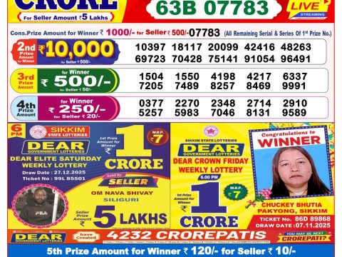 Dear Cupid Wednesday Weekly Lottery 6 Pm Result 04.06.2025 June 4, 2025 Leave a Comment on Dear Cupid Wednesday Weekly Lottery 6 Pm Result 04.06.2025 Share: XFacebookPinterestRedditVKDiggLinkedinMix Related Articles 0 15 Dear Magic Sunday Weekly Lottery 8 PM Result 28.12.2025 0 76 Rajshree Budh Weekly Lottery 1 PM Result 30.07.2025 0 101 Rajshree Tuesday Weekly Lottery 8 PM Result 15.07.2025 0 21 Dear Crown Friday Weekly Lottery 6 PM Result 12.12.2025