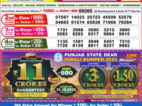 Dear Cupid Wednesday Weekly Lottery 6 Pm Result 7.5.2025 May 7, 2025 Leave a Comment on Dear Cupid Wednesday Weekly Lottery 6 Pm Result 7.5.2025 Share: XFacebookPinterestRedditVKDiggLinkedinMix Related Articles 0 92 Labh Laxmi Joy Saturday Weekly Lottery 4 Pm Result 10.5.2025 0 184 Dear 10 Pine Tuesday Weekly Lottery 7 Pm Result 10.06.2025 0 25 Dear Sandpiper Thursday Weekly Lottery 8 PM Result 16.10.2025 0 113 Punjab State Dear 10 Gold Monday Weekly Lottery 6 PM Result 12.05.2025