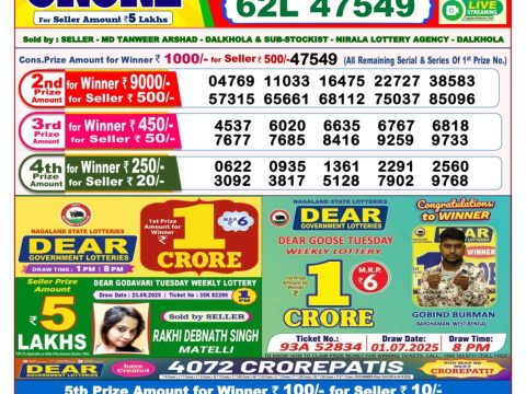 Dear Dasher Friday Weekly Lottery 6 Pm Result 06.06.2025 June 6, 2025 Leave a Comment on Dear Dasher Friday Weekly Lottery 6 Pm Result 06.06.2025 Share: XFacebookPinterestRedditVKDiggLinkedinMix Related Articles 0 29 Rajshree Friday Weekly Lottery 8 PM Result 10.10.2025 0 67 Punjab State Dear 10 Silver Wednesday Weekly Lottery 6 PM Result 02.07.2025 0 81 Rajshree 50 Guru Weekly Lottery 7:30 Pm Result 29.05.2025 0 31 Dear Goose Tuesday Weekly Lottery 8 PM Result 07.10.2025
