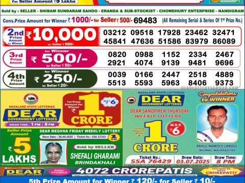All State Lottery Results For Dear Rajshree Golden Maharashtra Punjab Lottery