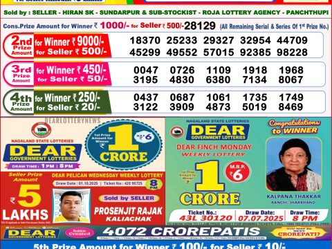 Golden Star Som Weekly Lottery 9 PM Result 04.08.2025 August 4, 2025 Leave a Comment on Golden Star Som Weekly Lottery 9 PM Result 04.08.2025 Share: XFacebookPinterestRedditVKDiggLinkedinMix Related Articles 0 86 Rajshree Thursday Weekly Lottery 8 Pm Result 05.06.2025 0 71 Punjab State Dear 10 Mercury Saturday Weekly Lottery 6 PM Result 12.07.2025 0 50 Rajshree Thursday Weekly Lottery 8 PM Result 17.07.2025 0 28 Dear Toucan Sunday Weekly Lottery 8 PM Result 12.10.2025