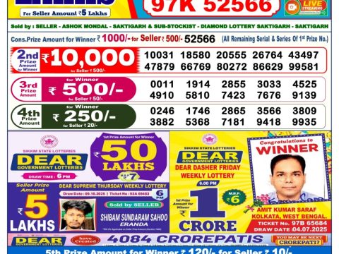 Labh Laxmi Bliss Monday Weekly Lottery 4 PM Result 05.5.25 May 5, 2025 Leave a Comment on Labh Laxmi Bliss Monday Weekly Lottery 4 PM Result 05.5.25 Share: XFacebookPinterestRedditVKDiggLinkedinMix Related Articles 0 56 Rajshree Thursday Weekly Lottery 8 PM Result 07.08.2025 0 76 Maharashtra Gajlaxmi Weekly Lottery 4:45 Pm Result 07.06.2025 0 28 Dear Empire Sunday Weekly Lottery 6 PM Result 19.10.2025 0 65 Maharashtra Ganeshlaxmi Weekly Lottery 5 PM Result 10.07.2025