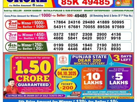 Labh Laxmi Bliss Monday Weekly Lottery 4 PM Result 07.07.2025 July 7, 2025 Leave a Comment on Labh Laxmi Bliss Monday Weekly Lottery 4 PM Result 07.07.2025 Share: XFacebookPinterestRedditVKDiggLinkedinMix Related Articles 0 99 Golden Star Mangal Weekly Lottery 9 PM Result 17.06.2025 0 62 Maharashtra Ganeshlaxmi Weekly Lottery 5 PM Result 17.07.2025 0 45 Dear Cupid Wednesday Weekly Lottery 6 PM Result 01.10.2025 0 72 Rajshree 10 Evening Weekly Lottery 5.40 PM Result 01.07.2025