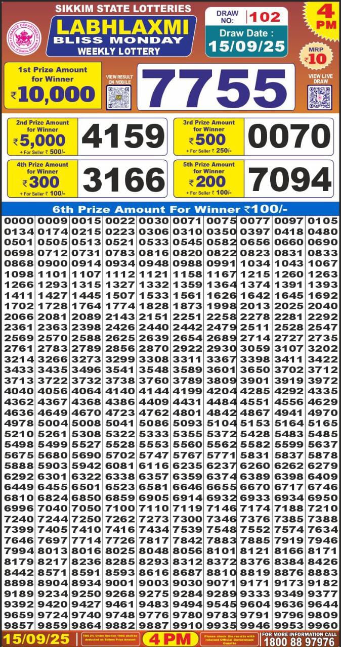 Labh Laxmi Bliss Monday Weekly Lottery 4 PM Result 15.09.2025 September 15, 2025 Leave a Comment on Labh Laxmi Bliss Monday Weekly Lottery 4 PM Result 15.09.2025 Share: XFacebookPinterestRedditVKDiggLinkedinMix Related Articles 0 24 Punjab State Dear 50 Buster Wednesday Weekly Lottery 6 PM Result 22.10.2025 0 68 Golden Star Ravi Weekly Lottery 9 PM Result 29 June 2025 0 81 Maharashtra Sagarlaxmi Weekly Lottery 4:15 PM Result 26.05.2025 0 15 Dear Legend Monday Weekly Lottery 6 PM Result 03.11.2025