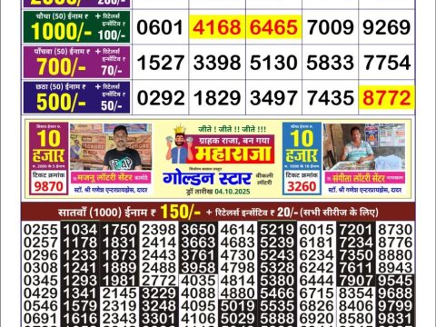 Labh Laxmi Bliss Monday Weekly Lottery 4 PM Result 26.05.2025 May 26, 2025 Leave a Comment on Labh Laxmi Bliss Monday Weekly Lottery 4 PM Result 26.05.2025 Share: XFacebookPinterestRedditVKDiggLinkedinMix Related Articles 0 90 Rajshree 30 Guru Weekly Lottery 8:30 Pm Result 22.05.2025 0 78 Punjab State Dear 10 Mercury Saturday Weekly Lottery 6 Pm Result 07.06.2025 0 76 Dear Pelican Wednesday Weekly Lottery 8 PM Result 09.07.2025 0 120 Dear 10 Green Tuesday Weekly 1:30 Pm Result 13.05.2025