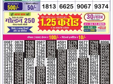 Labh Laxmi Delight wednessday Weekly Lottery 4 PM Result 14.01.2026 January 14, 2026 Leave a Comment on Labh Laxmi Delight wednessday Weekly Lottery 4 PM Result 14.01.2026 Share: XFacebookPinterestRedditVKDiggLinkedinMix Related Articles 0 109 Rajshree Ravi Weekly Lottery 1:00 Pm Result 25.05.2025 0 20 Golden Star Mangal Weekly Lottery 9 PM Result 23.12.2025 0 27 Dear Destiny Tuesday Weekly Lottery 8 PM Result 09.12.2025 0 138 Maharashtra Sahyadri Weekly Lottery 4:30 PM Result 26.04.25