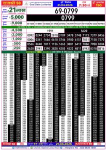 - Rajshree 50 Mangal Weekly Lottery 7:30 PM Result 21.04.2026