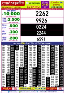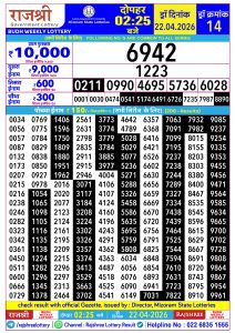 - Rajshree Budh Weekly Lottery 2.25PM Result 22.04.2026