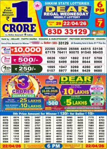- Dear Regal Wednessday Weekly Lottery 6 PM Result 22.04.2026