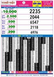 - Rajshree 300 Monthly 6:30pm Lottery Result 21.04.2026