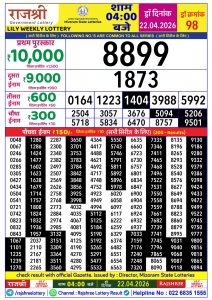 - Rajshree Lily Weekly Lottery 4 PM Result 22.04.2026