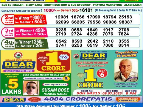 Maharashtra Ganeshlaxmi Weekly Lottery 5 PM Result 05.07.2025 July 5, 2025 Leave a Comment on Maharashtra Ganeshlaxmi Weekly Lottery 5 PM Result 05.07.2025 Share: XFacebookPinterestRedditVKDiggLinkedinMix Related Articles 0 65 Rajshree 250 Monthly Lottery Result 01.07.2025 0 22 Dear Mahanadi Thursday Weekly Lottery 1 PM Result 16.10.2025 0 55 Punjab state dear 20 6 PM monthly Lottery Result 22.07.2025 0 44 Rajshree Budh Weekly Lottery 1 PM Result 24.09.2025