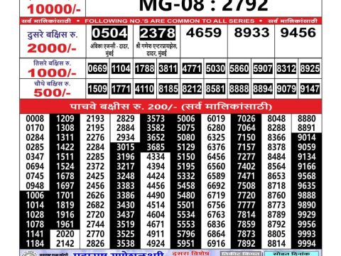 Maharashtra Ganeshlaxmi Weekly Lottery 5 Pm Result 07.06.2025 June 7, 2025 Leave a Comment on Maharashtra Ganeshlaxmi Weekly Lottery 5 Pm Result 07.06.2025 Share: XFacebookPinterestRedditVKDiggLinkedinMix Related Articles 0 29 Maharashtra Ganeshlaxmi Weekly Lottery 5 PM Result 13.10.2025 0 89 Rajshree Budh Weekly Lottery 1:00 Pm Result 14.05.2025 0 101 Dear Mahanadi Thursday Weekly Lottery 1 PM Result 26.06.2025 0 30 Labh Laxmi Joy Saturday Weekly Lottery 4 PM Result 01.11.2025