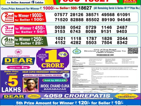 Maharashtra Ganeshlaxmi Weekly Lottery 5 Pm Result 08.06.2025 June 8, 2025 Leave a Comment on Maharashtra Ganeshlaxmi Weekly Lottery 5 Pm Result 08.06.2025 Share: XFacebookPinterestRedditVKDiggLinkedinMix Related Articles 0 85 Rajshree Tulip Weekly Lottery 4 Pm Result 13.05.2025 0 48 Dear Dwarka Monday Weekly Lottery 1 PM Result 29.09.2025 0 87 Maharashtra Ganeshlaxmi Weekly Lottery 5 Pm Result 8.5.2025 0 32 Maharashtra Laxmi Weekly Lottery 4.15 PM Result 04.10.2025