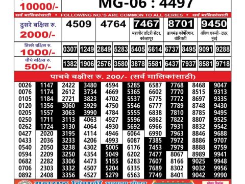 Maharashtra Mohini Weekly Lottery 4:30 Pm Result 25.05.2025 May 25, 2025 Leave a Comment on Maharashtra Mohini Weekly Lottery 4:30 Pm Result 25.05.2025 Share: XFacebookPinterestRedditVKDiggLinkedinMix Related Articles 0 23 Maharashtra Ganeshlaxmi Weekly Lottery 5 PM Result 23.10.2025 0 86 Punjab State Dear 50 Monday Weekly Lottery 6 pm Result 15.09.2025 0 42 Maharashtra Akshay Weekly Lottery 4.15 PM Result 17.09.2025 0 90 Golden Star Ravi Weekly Lottery 9 Pm Result 18 May 2025