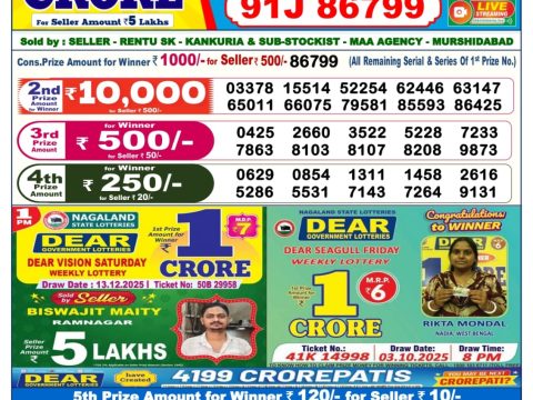 Maharashtra Sagar laxmi lottery result 08.12.2025 December 8, 2025 Leave a Comment on Maharashtra Sagar laxmi lottery result 08.12.2025 Share: XFacebookPinterestRedditVKDiggLinkedinMix Related Articles 0 67 Rajshree 50 Shani Weekly Lottery 7:30 PM Result 26.07.2025 0 95 Rajshree Sunday Weekly Lottery 8 PM Result 29.06.2025 0 78 Golden Star Shukra Weekly Lottery 9 PM Result 18.07.2025 0 8 Dear Prestige Saturday Weekly Lottery 6 PM Result 13.12.2025
