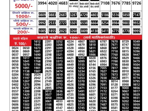 Maharashtra Sagar laxmi lottery result 15.12.2025 December 15, 2025 Leave a Comment on Maharashtra Sagar laxmi lottery result 15.12.2025 Share: XFacebookPinterestRedditVKDiggLinkedinMix Related Articles 0 132 Rajshree Sunflower Weekly Lottery 4 PM Result 07.09.2025 0 87 Maharashtra Padmini Weekly Lottery 4.15 PM Result 23.09.2025 0 29 Maharashtra Gajlaxmi Lottery Result 20.02.2026 0 132 Rajshree Sunday Weekly Lottery 8 Pm Result 25.05.2025