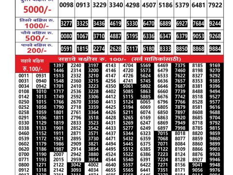 Maharashtra Sagar Laxmi Weekly Lottery 4.15 PM Result 07.07.2025 July 7, 2025 Leave a Comment on Maharashtra Sagar Laxmi Weekly Lottery 4.15 PM Result 07.07.2025 Share: XFacebookPinterestRedditVKDiggLinkedinMix Related Articles 0 159 Rajshree 10 Evening Weekly Lottery 5:40 Pm Result 9.5.2025 0 134 Dear 100 Beas Tuesday Day Weekly Lottery 5 Pm Result 13.05.2025 0 16 Maharashtra Gajlaxmi Lottery Result 06.01.2026 0 18 Golden Star Som Weekly Lottery 9 PM Result 05.01.2026