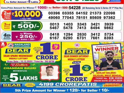 Maharashtra Sagarlaxmi Weekly Lottery 4:15 Pm Result 09.06.2025 June 9, 2025 Leave a Comment on Maharashtra Sagarlaxmi Weekly Lottery 4:15 Pm Result 09.06.2025 Share: XFacebookPinterestRedditVKDiggLinkedinMix Related Articles 0 94 Maharashtra Sahyadri Weekly Lottery 4:30 PM Result 06.08.2025 0 24 Dear Dream Wednesday Weekly Lottery 8 PM Result 10.12.2025 0 51 Rajshree 50 Ravi Weekly Lottery 7:30 PM Result 30.11.2025 0 81 Dear Dasher Friday Weekly Lottery 6 PM Result 19.09.2025