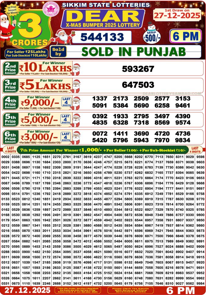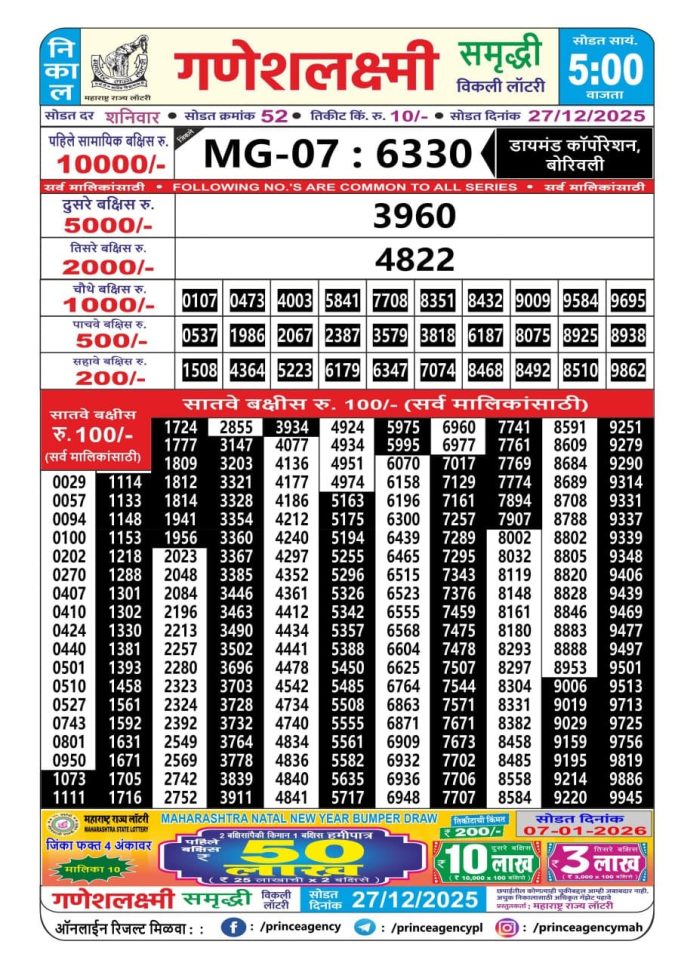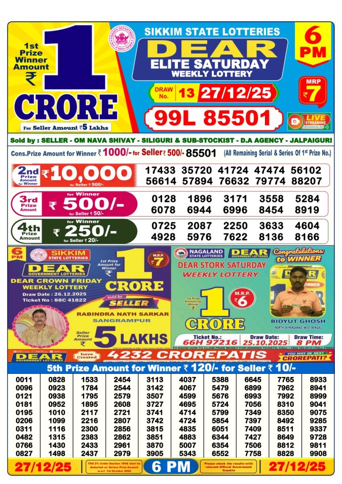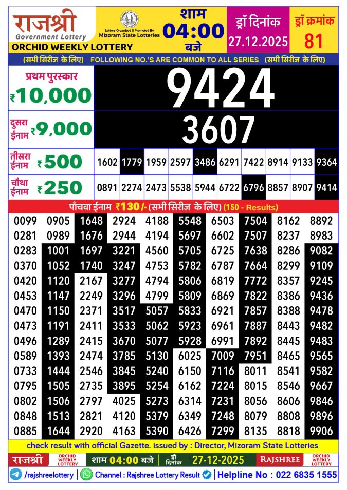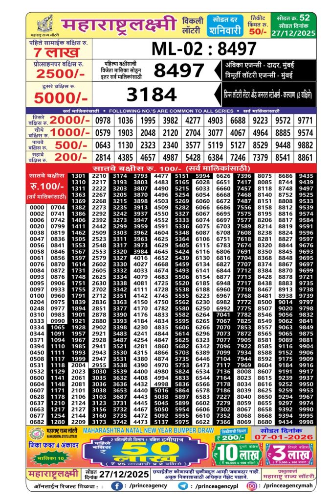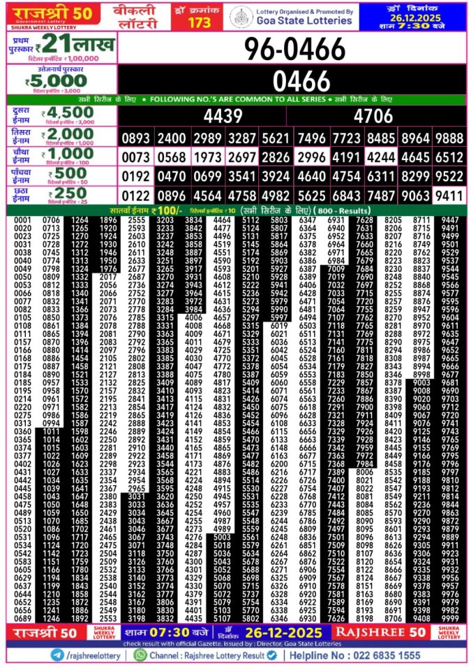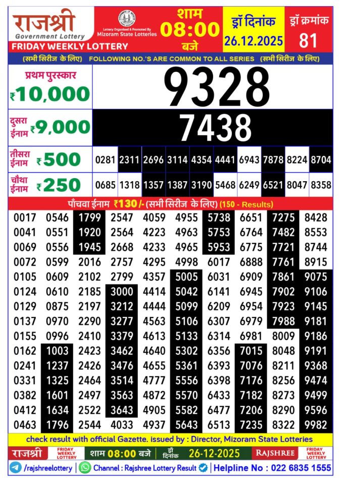 All State Lottery Results For Dear Rajshree Golden Maharashtra Punjab Lottery