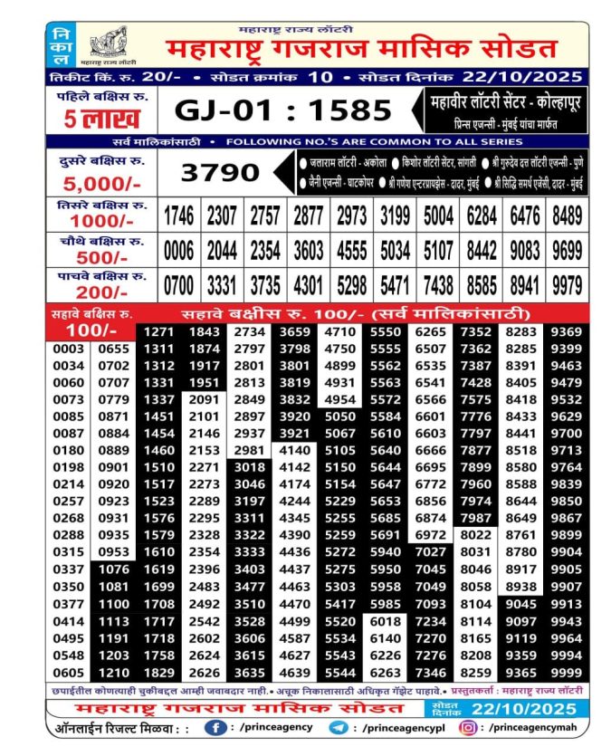 Maharashtra Gajraj Monthly today result 22.10.2025