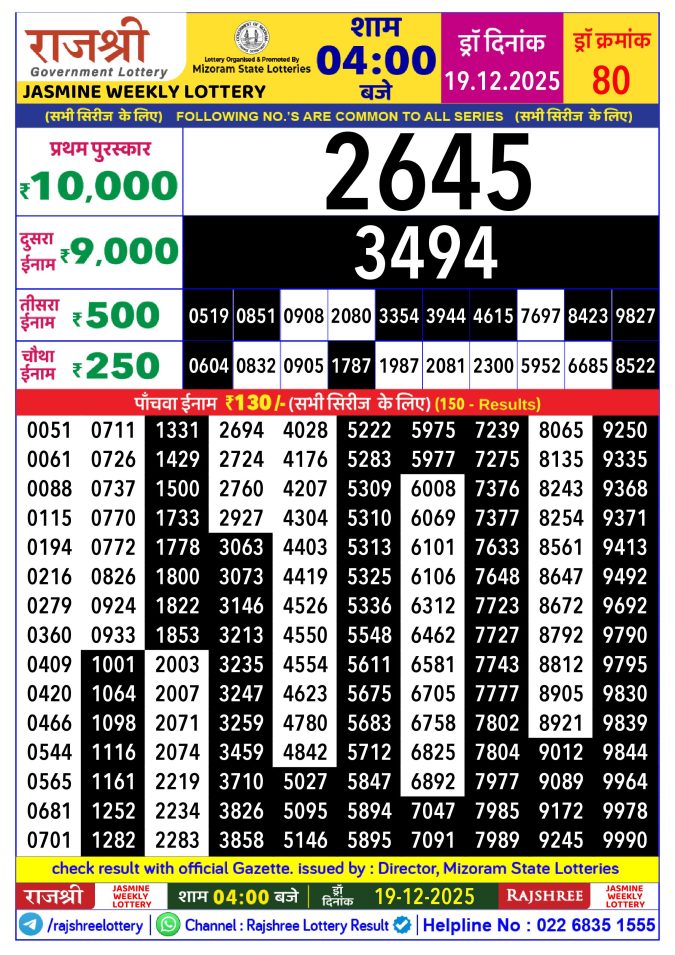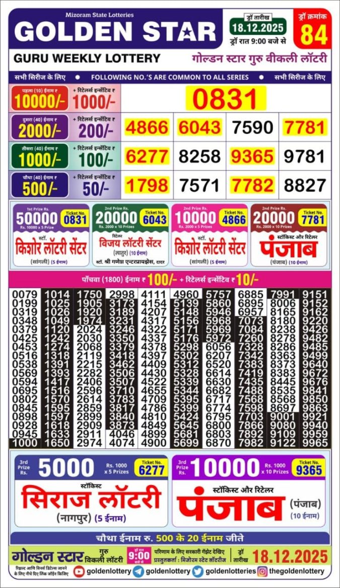 All State Lottery Results For Dear Rajshree Golden Maharashtra Punjab Lottery