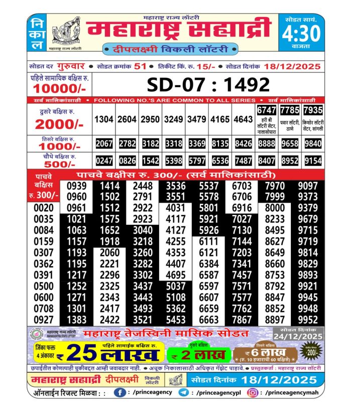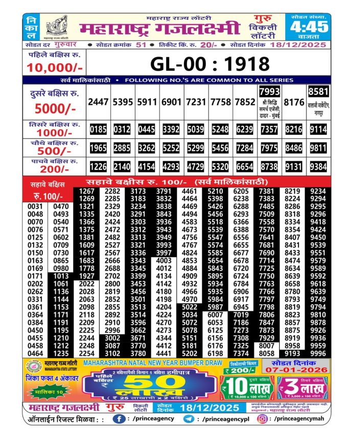 All State Lottery Results For Dear Rajshree Golden Maharashtra Punjab Lottery