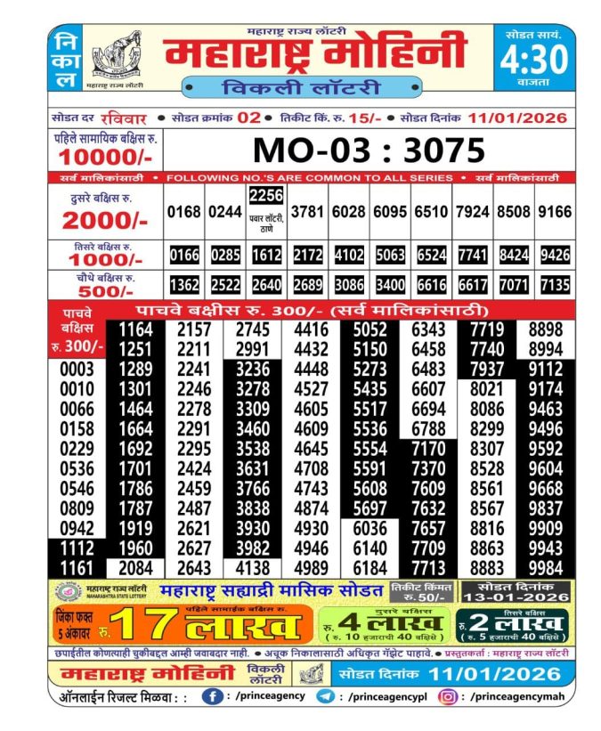 Maharashtra Mohini Weekly Lottery Result 11.01.2026