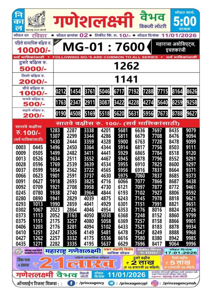 Maharashtra Gajlaxmi Lottery Result 11.01.2026