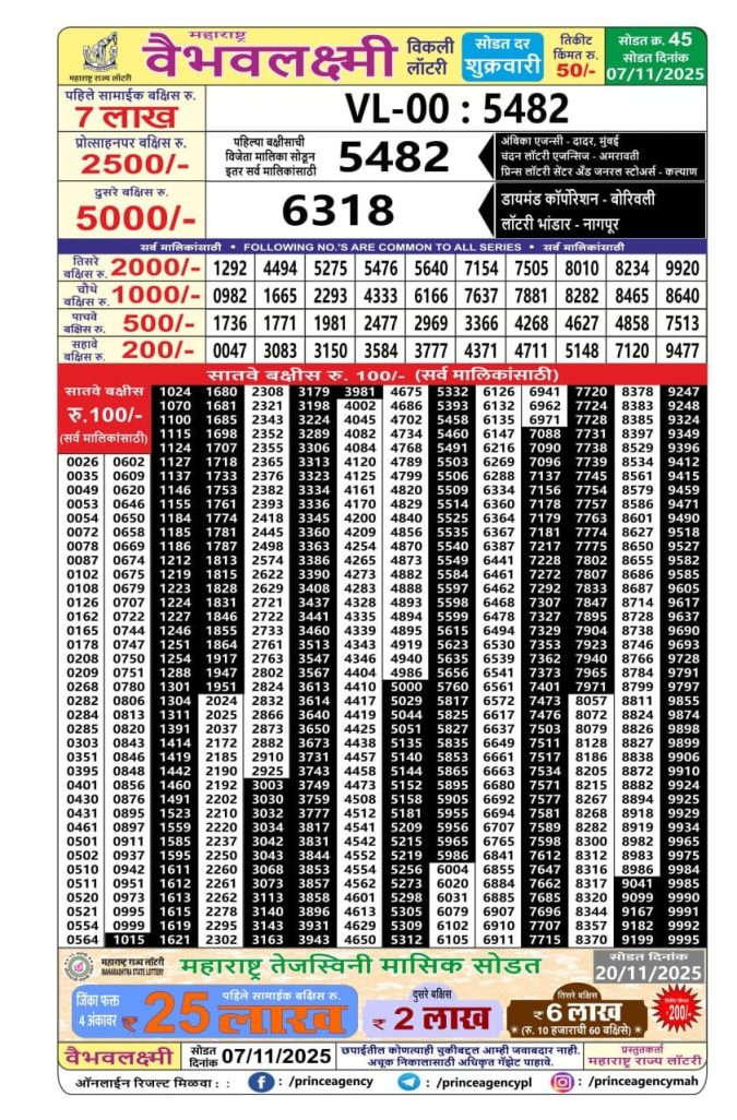 Maharashtra Vaibhav Laxmi Weekly Lottery Result 07.11.2025