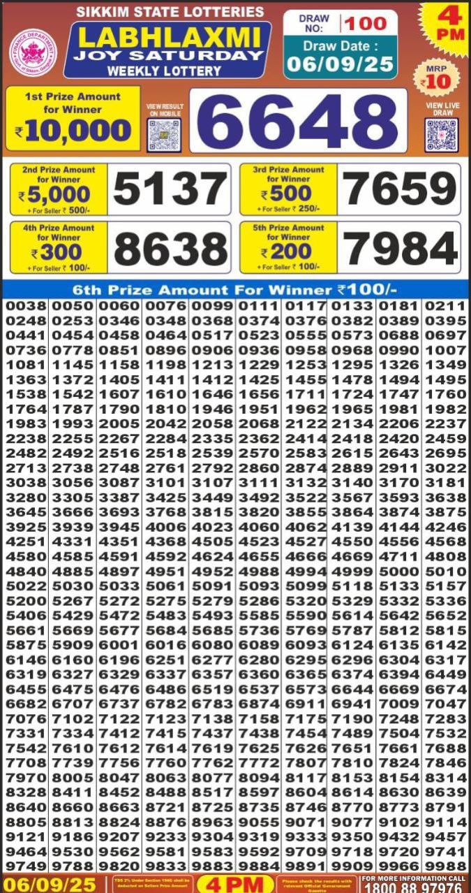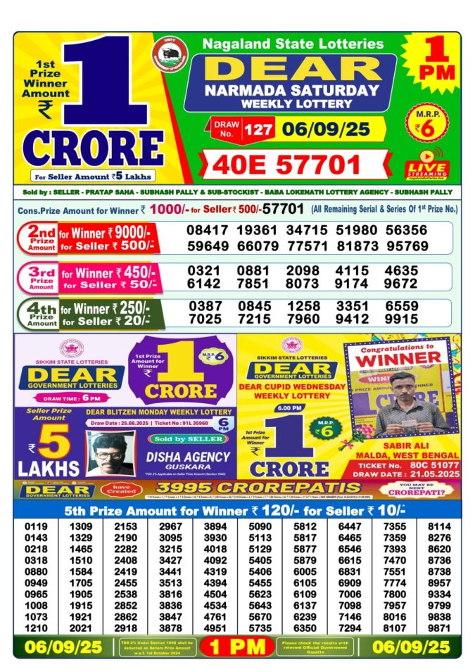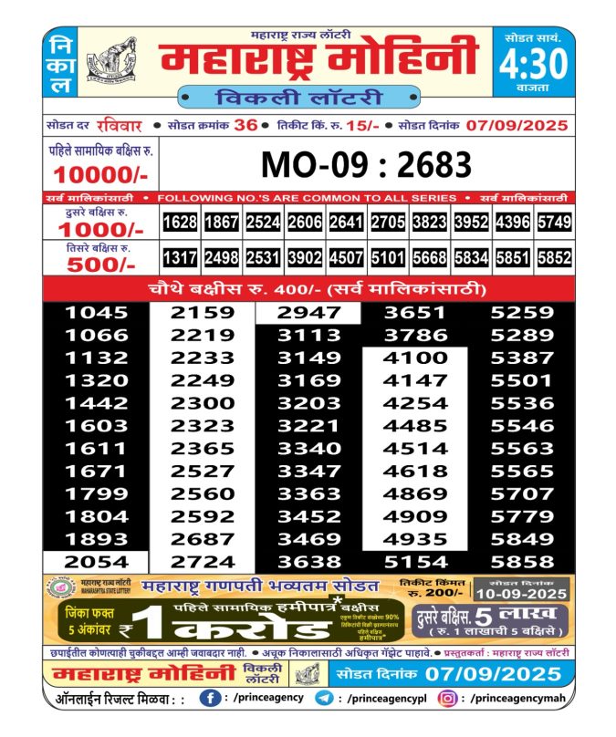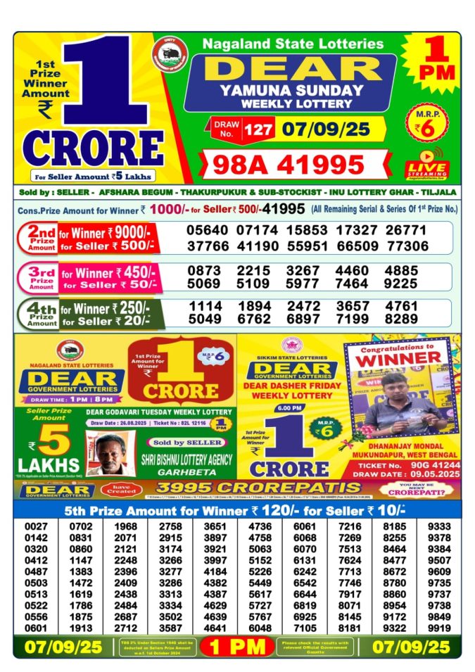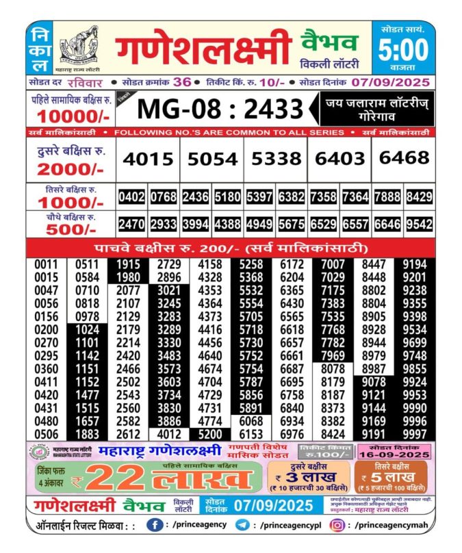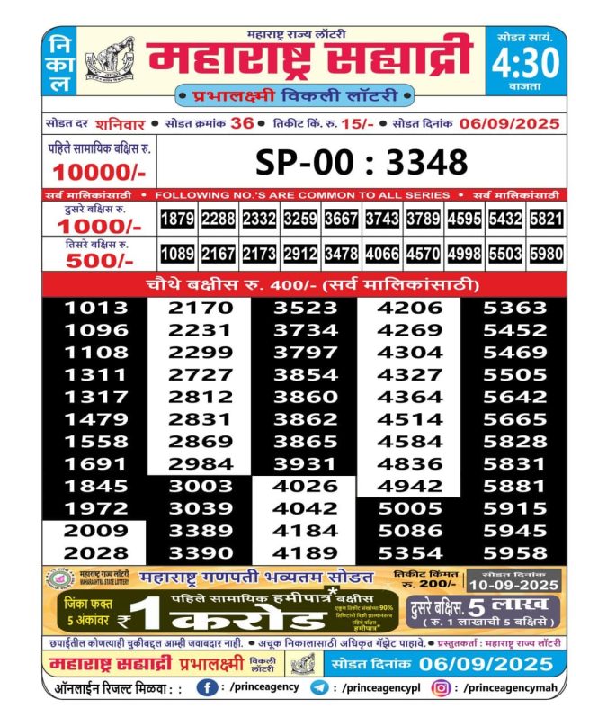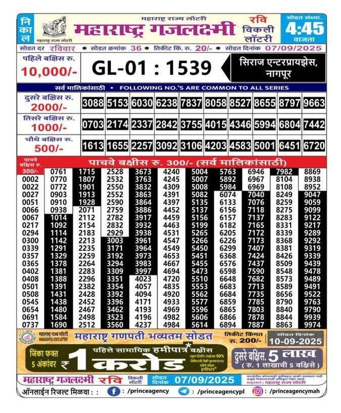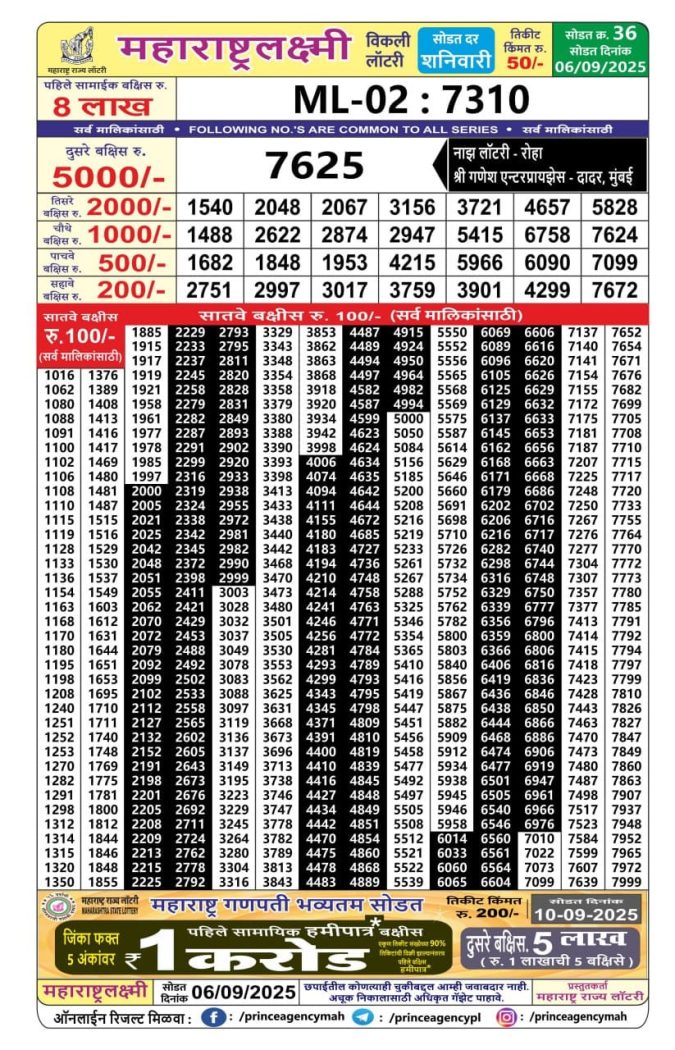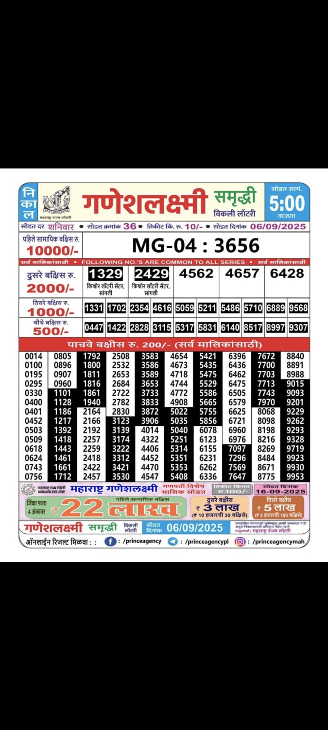 All State Lottery Results For Dear Rajshree Golden Maharashtra Punjab Lottery