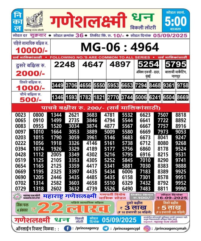 Maharashtra Ganeshlaxmi Weekly Lottery 5 PM Result 05.09.2025