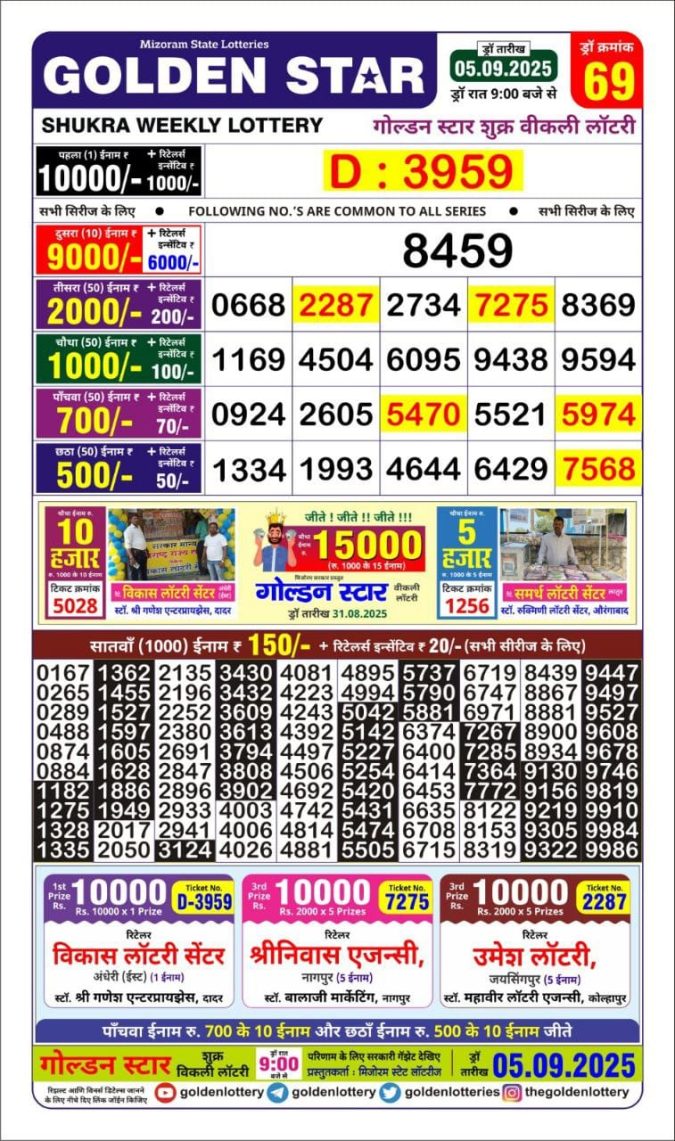 Golden Star Shukra Weekly Lottery 9 PM Result 05.09.2025