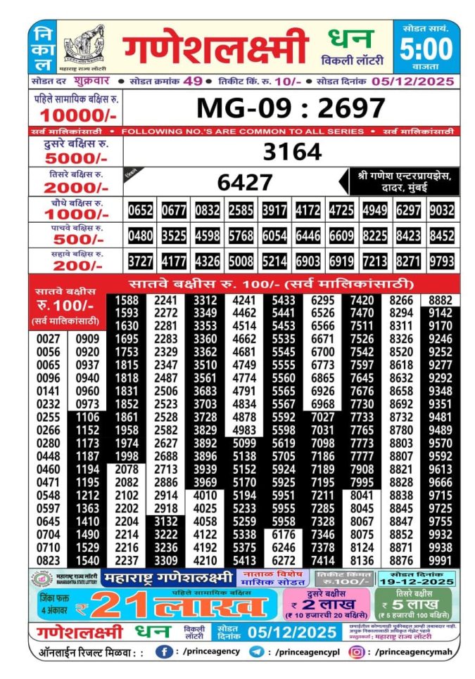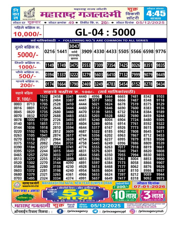 Maharashtra Gajlaxmi Lottery Result 05.12.2025
