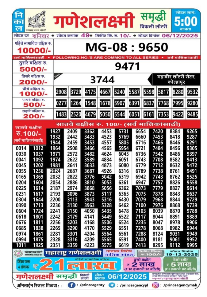 Maharashtra Gajlaxmi Lottery Result 06.12.2025