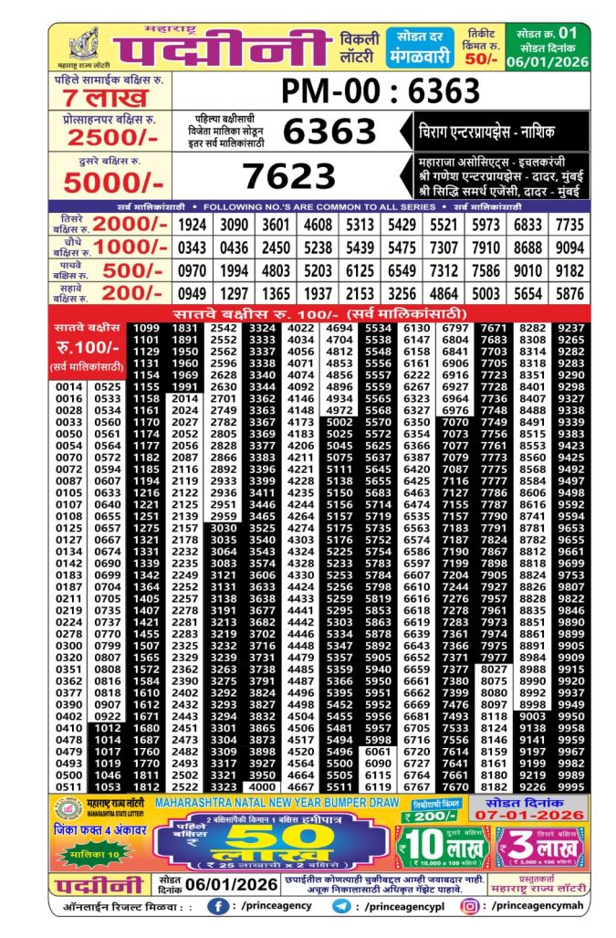 Maharashtra Padmini Weekly Lottery Draw Result 06.01.2026