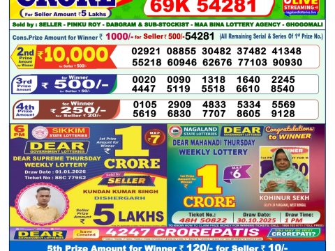 Rajshree 10 Evening Weekly Lottery 5:40 PM Result 11.11.2025 November 11, 2025 Leave a Comment on Rajshree 10 Evening Weekly Lottery 5:40 PM Result 11.11.2025 Share: XFacebookPinterestRedditVKDiggLinkedinMix Related Articles 0 67 Rajshree 30 Som Weekly Lottery 8:30 PM Result 22.09.2025 0 74 Maharashtra Laxmi Weekly Lottery 4.15 PM Result 09.08.2025 0 15 Dear Victory Friday Weekly Lottery 1 PM Result 02.01.2026 0 136 Dear Super Iron Saturday Weekly Lottery 7 PM Result 28.06.2025