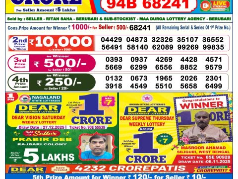 Rajshree 30 Som Weekly Lottery 8:30 PM Result 14.07.2025 July 14, 2025 Leave a Comment on Rajshree 30 Som Weekly Lottery 8:30 PM Result 14.07.2025 Share: XFacebookPinterestRedditVKDiggLinkedinMix Related Articles 0 104 Rajshree 50 Shani Weekly Lottery 7:30 PM Result 19.07.2025 0 79 Dear Narmada Saturday Weekly Lottery 1 PM Result 01.11.2025 0 76 Maharashtra Sahyadri Weekly Lottery 4.30 PM Result 14.10.2025 0 19 Dear Empire Sunday Weekly Lottery 6 PM Result 28.12.2025