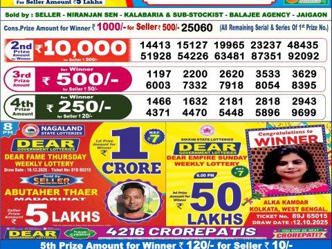 Dear Crown Friday Weekly Lottery 6 PM Result 19.12.2025