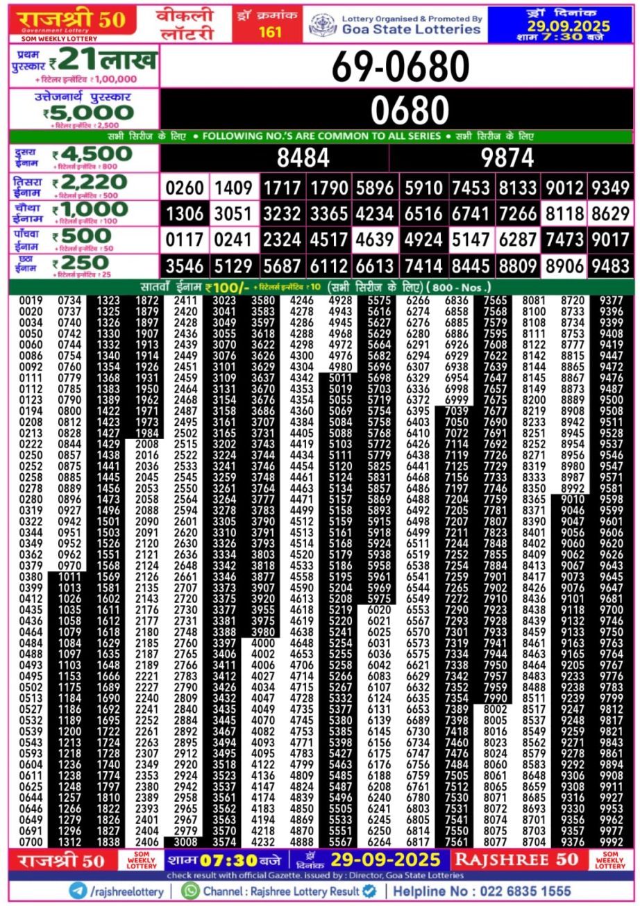 Rajshree 50 Som Weekly Lottery 7:30 PM Result 29.09.2025 September 29, 2025 Leave a Comment on Rajshree 50 Som Weekly Lottery 7:30 PM Result 29.09.2025 Share: XFacebookPinterestRedditVKDiggLinkedinMix Related Articles 0 80 Dear Finch Monday Weekly Lottery 8 PM Result 23.06.2025 0 42 Maharashtra Akarshak Weekly Lottery 4.15 PM Result 18.09.2025 0 65 Maharashtra Gajlaxmi Weekly Lottery 4:45 PM Result 29.06.2025 0 72 Rajshree Shani Weekly Lottery 1:00 PM Result 21.06.2025