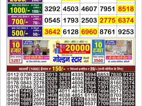 Rajshree Budh Weekly Lottery 1 PM Result 12.11.2025 November 12, 2025 Leave a Comment on Rajshree Budh Weekly Lottery 1 PM Result 12.11.2025 Share: XFacebookPinterestRedditVKDiggLinkedinMix Related Articles 0 74 Dear Mahanadi Thursday Weekly Lottery 1 PM Result 19.06.2025 0 35 Rajshree Mangal Weekly Lottery 1 PM Result 07.10.2025 0 59 Dear Dwarka Monday Weekly Lottery 1 PM Result 15.09.2025 0 31 Golden Star Guru Weekly Lottery 9 PM Result 09.10.2025