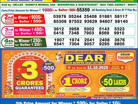 Rajshree Budh Weekly Lottery 1 PM Result 16.07.2025 July 16, 2025 Leave a Comment on Rajshree Budh Weekly Lottery 1 PM Result 16.07.2025 Share: XFacebookPinterestRedditVKDiggLinkedinMix Related Articles 0 35 Dear Meghna Friday Weekly Lottery 1 PM Result 10.10.2025 0 71 Maharashtra Sahyadri Weekly Lottery 4:30 PM Result 20.06.2025 0 53 Dear Toucan Sunday Weekly Lottery 8 PM Result 14.09.2025 0 87 Punjab State Dear 10 Gold Monday Weekly Lottery 6 PM Result 05.5.25