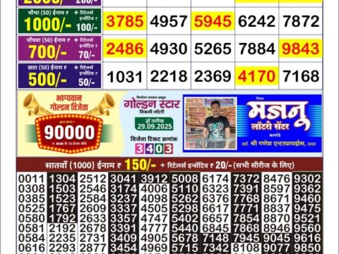 Rajshree Friday Weekly Lottery 8 Pm Result 30.05.2025 May 30, 2025 Leave a Comment on Rajshree Friday Weekly Lottery 8 Pm Result 30.05.2025 Share: XFacebookPinterestRedditVKDiggLinkedinMix Related Articles 0 68 Dear Sandpiper Thursday Weekly Lottery 8 PM Result 03.07.2025 0 9 Mahrashtra Sahyadari Lottery Result 10.11.2025 0 100 Golden Star Shukra Weekly Lottery 9 PM Result 02 May 2025 0 34 Golden Star Mangal Weekly Lottery 9 PM Result 30.09.2025