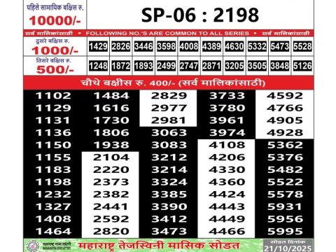 Maharashtra Sahyadri Weekly Lottery 4.30 PM Result 18.10.2025