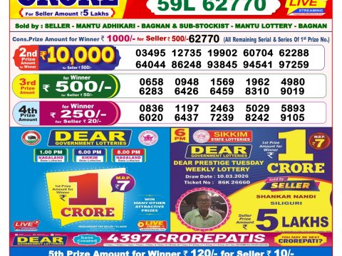 Rajshree Wednessday Weekly Lottery 8 PM Result 01.04.2026 01 04 2026 Leave a Comment on Rajshree Wednessday Weekly Lottery 8 PM Result 01.04.2026 Share: XFacebookPinterestRedditVKDiggLinkedinMix Related Articles 0 72 Punjab State Dear 50 Bronco Tuesday Weekly Lottery 6 PM Result 13.01.2026 0 67 Rajshree Ravi Weekly Lottery 1 PM Result 04.01.2026 0 48 Maharashtra Laxmi Weekly Lottery Result 14.02.2026 0 41 Dear Horizon Friday Weekly Lottery 8 PM Result 13.03.2026